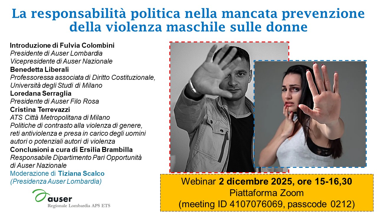 2/12, ore 15: Webinar "La responsabilità politica nella mancata prevenzione della violenza maschile sulle donne"