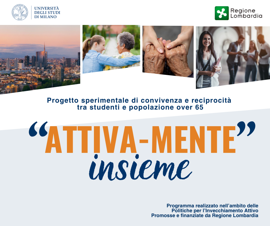 “Attiva-Mente Insieme” è il programma a cura dell’Università degli Studi di Milano, finanziato da Regione Lombardia, che promuove cohousing e volontariato intergenerazionale tra studenti e over 65, con il supporto di MeglioMilano e altre realtà locali e del territorio: Ada Odv, Area Vasta Uilp Milano, Auser Regione Lombardia, Fondazione Caritas Ambrosiana, Associazione Nestore Aps, Rotary Club Milano Precotto, Spi Cgil Milano.